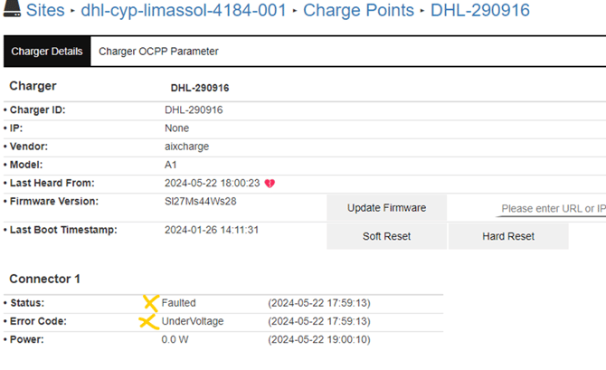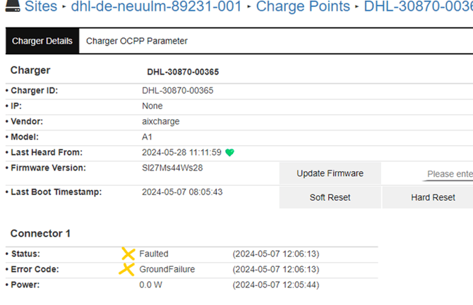 - Zeile in dem bestehenden Notizfeld des Charging Alerts erstellen: Standort-Name: wieder online/Problem behoben (Bsp. dhl-de-neuulm-89231-001: wieder online)